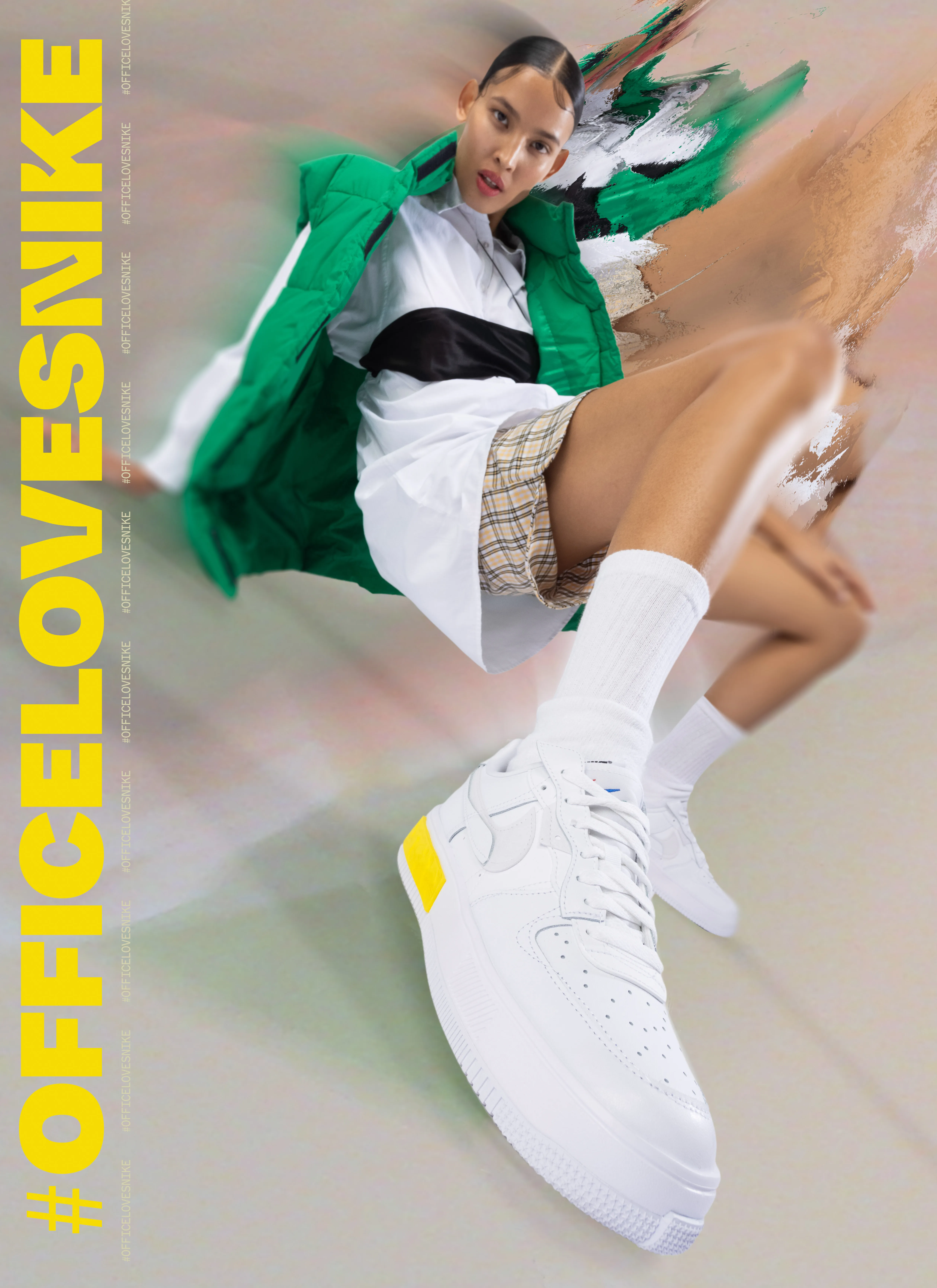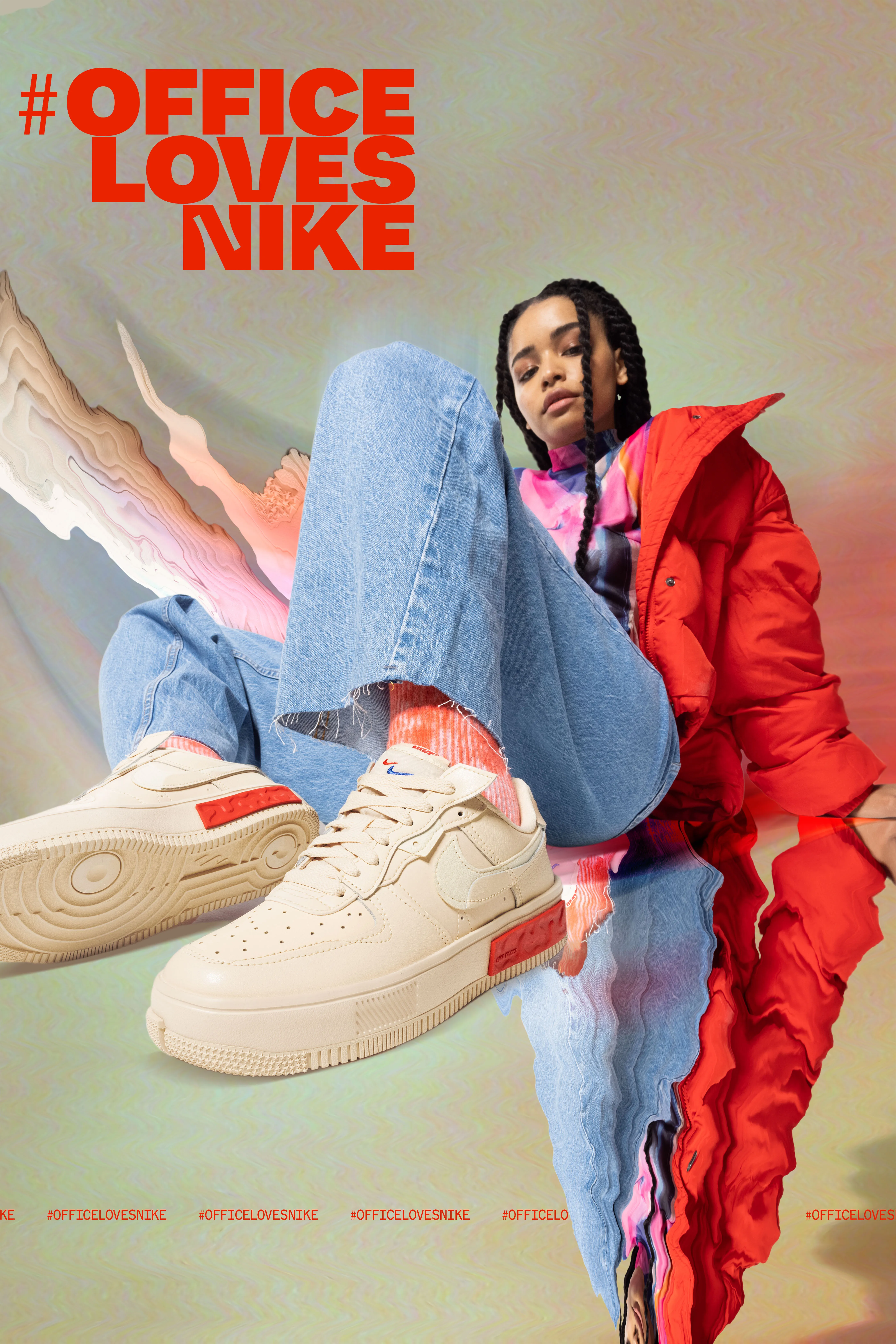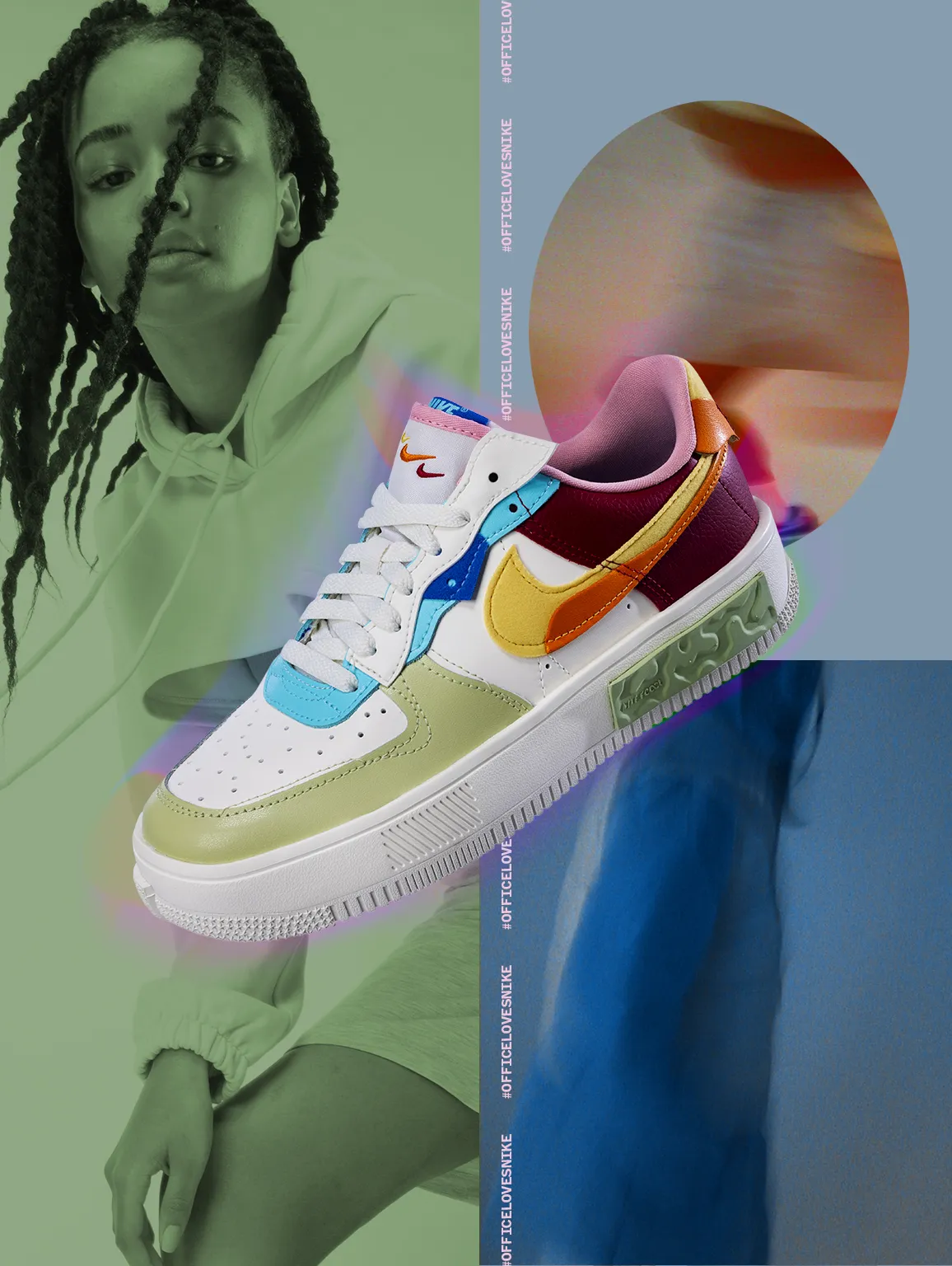 I was commissioned by Office Shoes to create a campaign around the launch of their exclusive Nike AF1 Fontanka. The shoes’ physical appearance has a deconstructed/ “makeshift” feel to them, so I wanted to represent that feeling through the visuals, with collage, mixing lofi vintage toy-camera footage and photography with high end cine-cam footage and DSLR photography, all shot on green screen and composited with VFX.