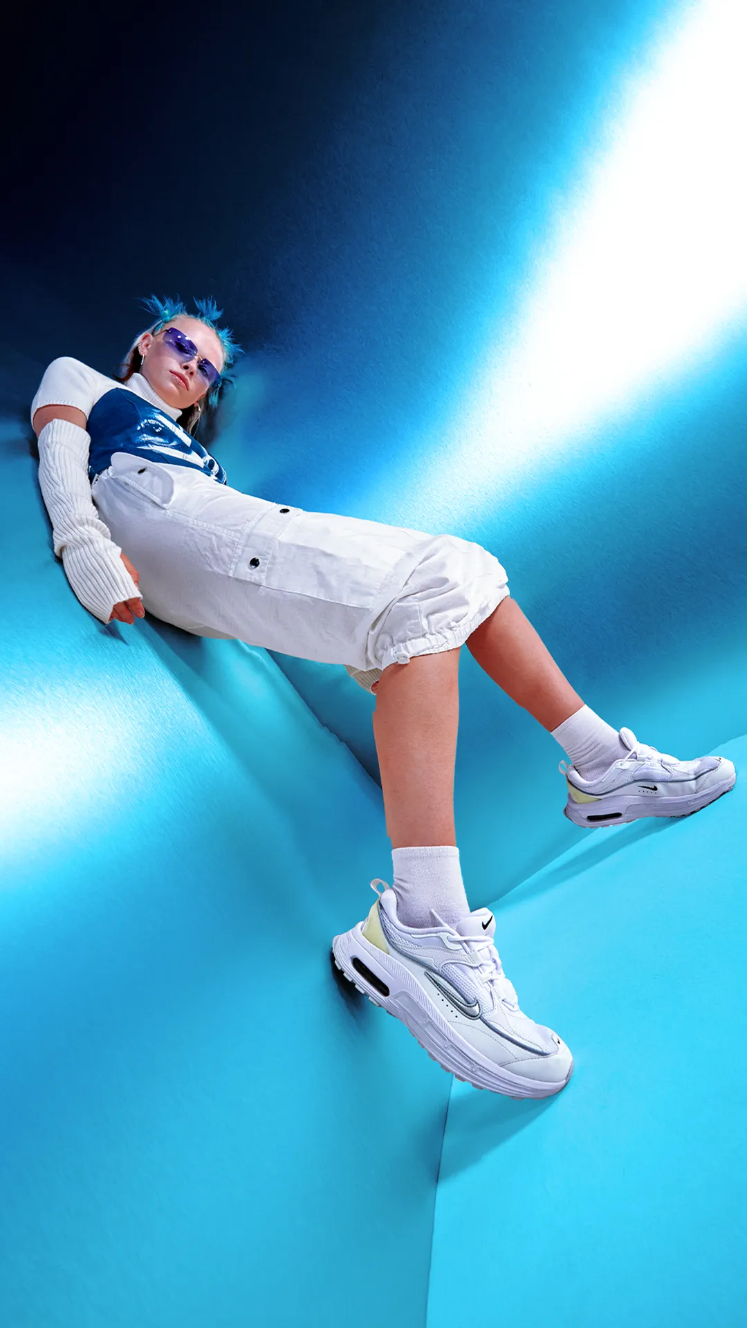 Commissioned by Office to conceptualise and execute the Nike “Bliss” campaign. I took inspiration from early 2000’s technology adverts, using a lot of the cool electric hues, chrome materials and 00’s styling to compliment the trainers. Complete with custom designed graphic motifs, 3D digital assets, it was the first project where my personal photography style has been used commercially.